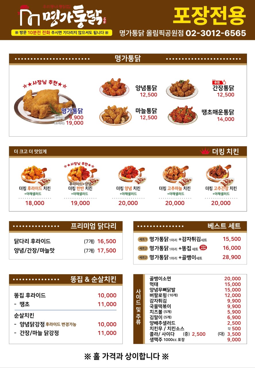 사장님의 센스와 명가통닭의 맛으로 ! 이미 입소문이 자자한 명가통닭 올림픽 공원점 !